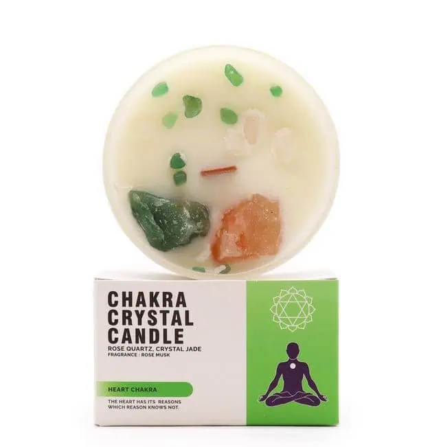 Apri il tuo cuore all‘amore e alla compassione con la nostra candela cristallo del chakra del cuore.