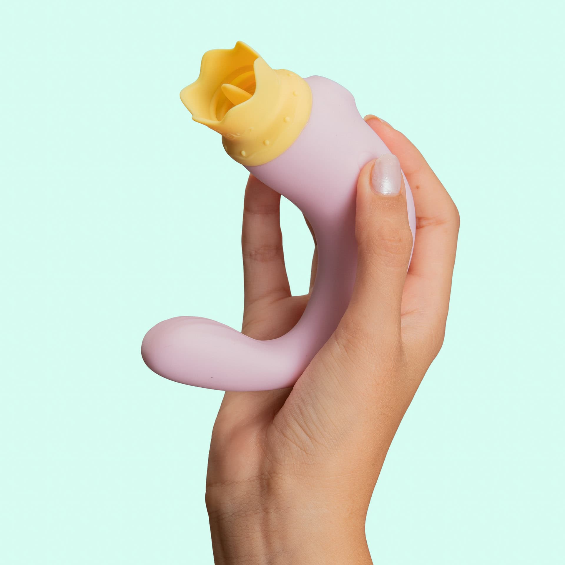 2. Una lingua posizionata sulla corona, morbida e flessibile che vibra e si muove per stuzzicare piacevolmente la tua Clitoride